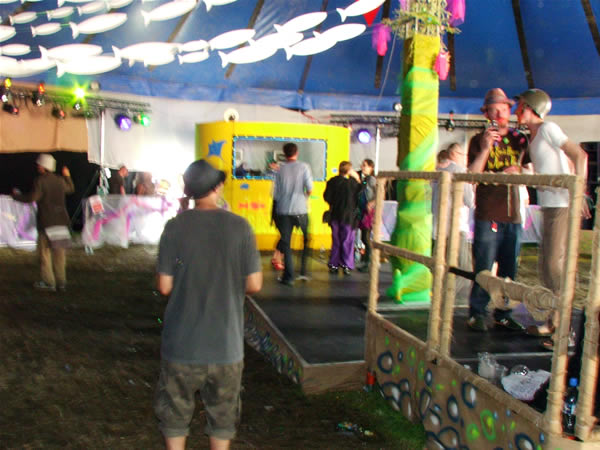 Glade Festival 2008 The Jands Vista S3 lighting console (kindly loaned from AC Lighting) being operated by DiscoPete. The slightly limited view from inside the lighting tower in the Sancho Panza tent where I was doing the lighting. The view from the top of the lighting tower in the Sancho Panza tent. The bar in the rear section of the Sancho Panza tent.